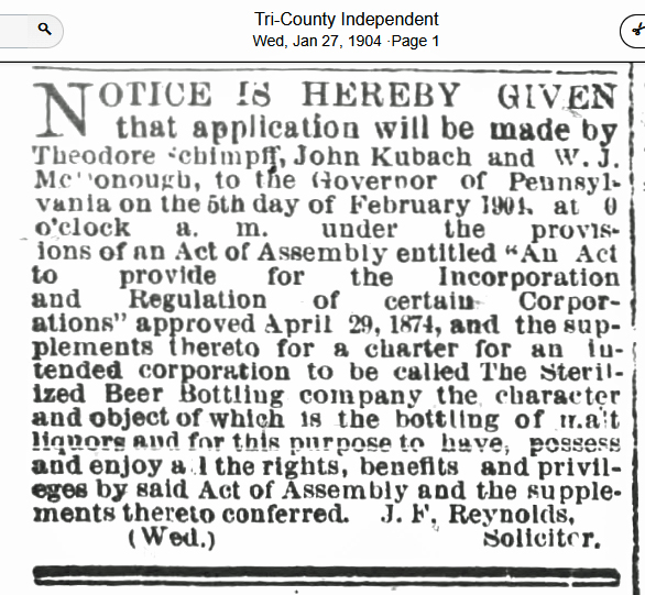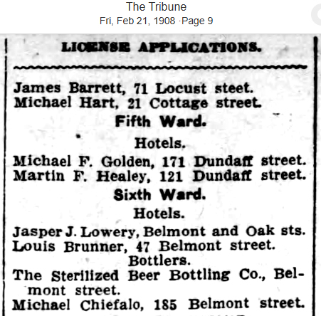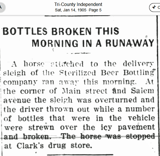 January 1904 applies for a Charter to incorporate. February 1904 Charter is awarded. January 1905 horse drawn wagon accident. February 1908 last mention of company applying for a city license. |